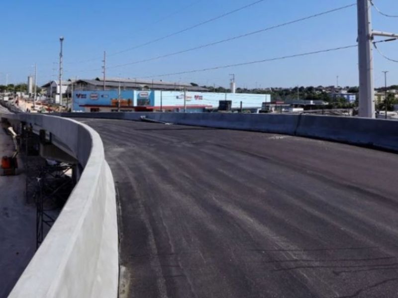 alça superior do Viaduto Rei Pelé, situado na Bola do Produtor, na zona leste, foi liberada para o trânsito na manhã desta terça-feira (27). A Prefeitura de Manaus concluiu essa etapa da obra em apenas oito meses, com o objetivo de aliviar o tráfego na região. A alça permitirá o acesso direto às avenidas Camapuã e Autaz Mirim para os motoristas que seguem no sentido Centro/bairro. As obras na parte inferior do complexo continuam, e o viaduto completo está previsto para ser entregue em dezembro deste ano.